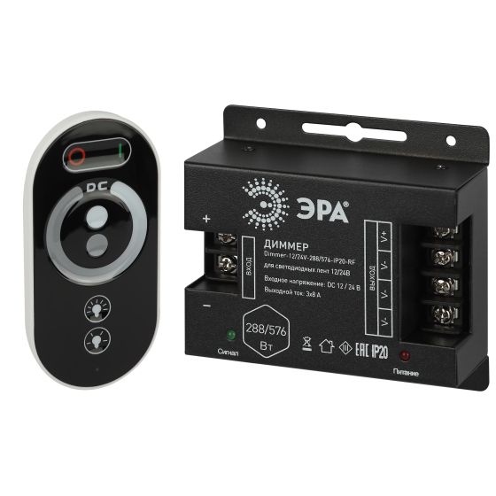 Диммер для светодиодной ленты ЭРА Dimmer-12/24V-288/576W 24A с радио пультом