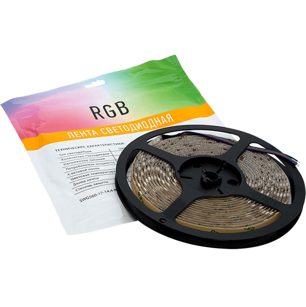 Лента 5050, 60 LED/м, 14,4 Вт/м, 12В , IP20, RGB